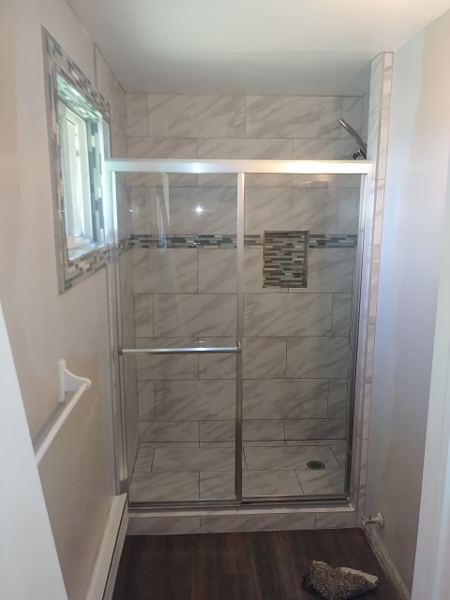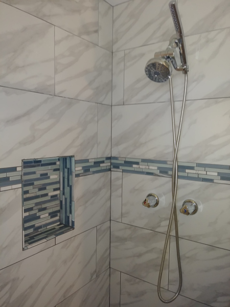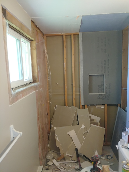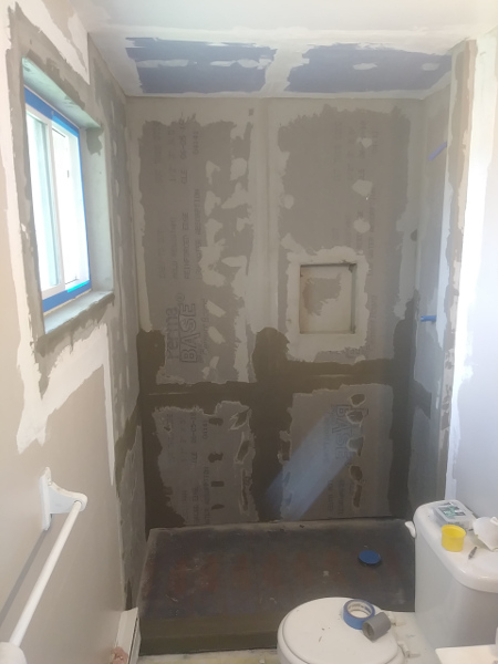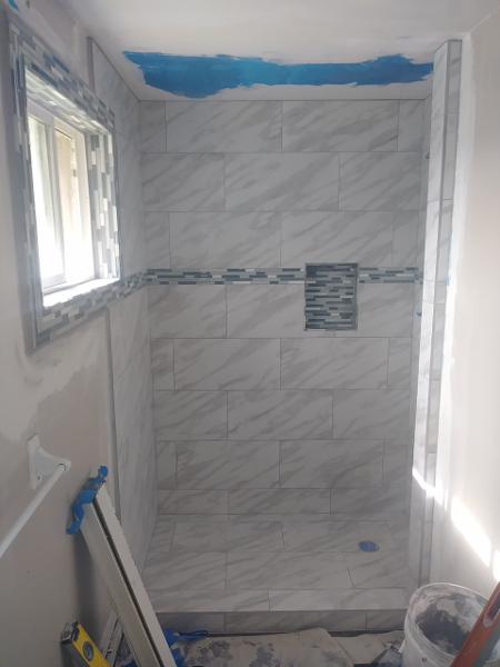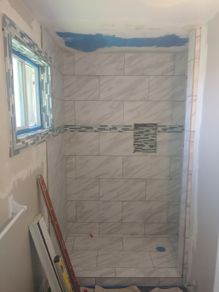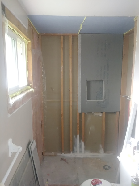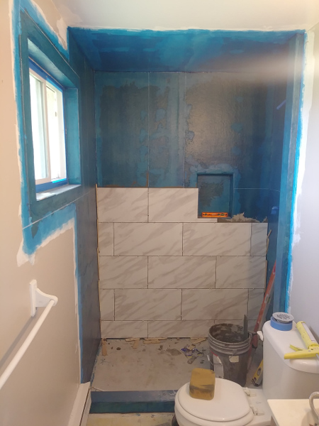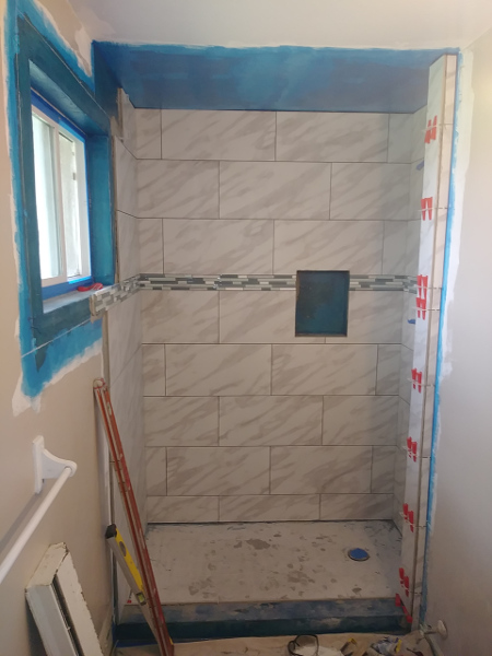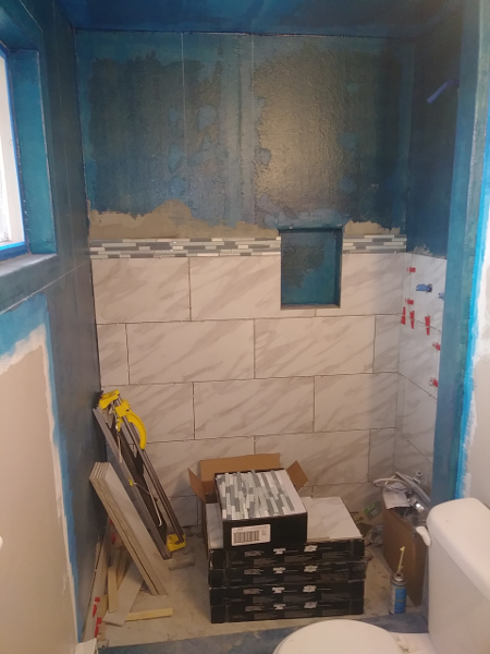 Time lapse photos of a shower rebuild. from Demolition removal, plumbing, prep, and tile.