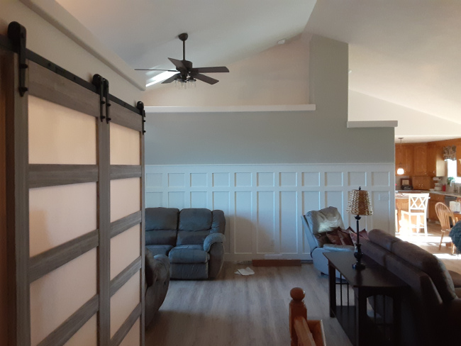 New open floor plan. Removed walls and archways. framed new entry, matched to existing.